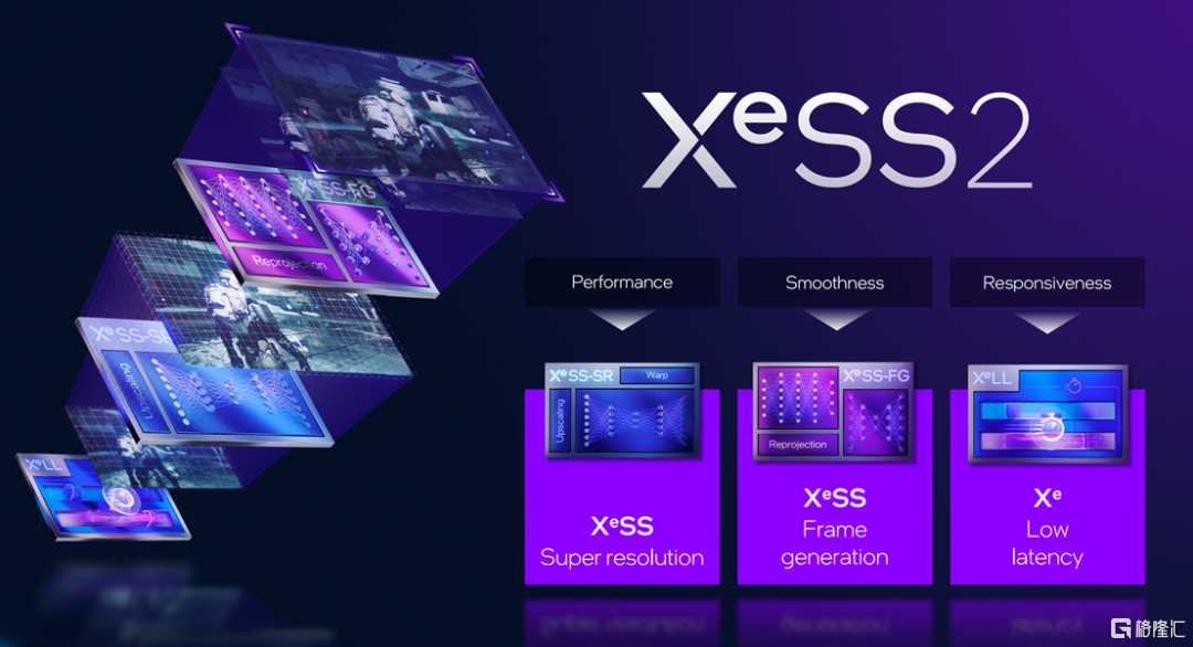 其次看GPU Tile,则具体指拥有多帧生成(即在实际渲染的帧之间插入 AI 生成的帧)能力的新一代GPU—— Xe3。