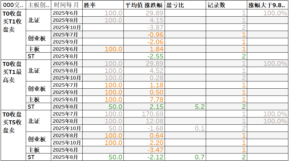 平仓规则是,持股1天后尾盘卖为平仓条件,胜率为76.93%