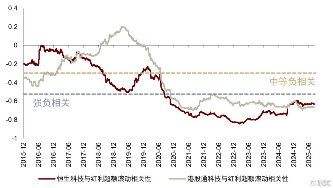 图表1:港股科技与红利风格超额收益滚动1年相关性