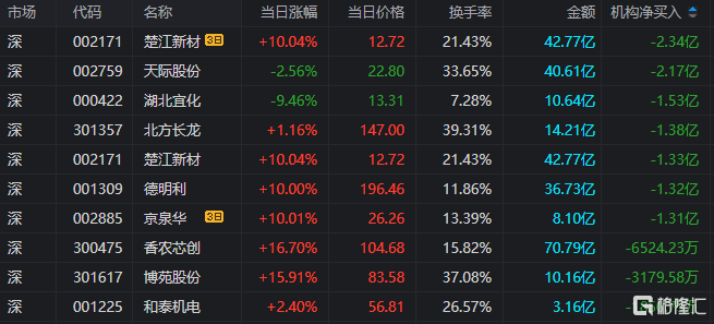 德明利:今日涨停,换手率11.91%,成交额36.73亿。龙虎榜数据显示,机构净卖出1.32亿元,中山东路净买入8053万元。