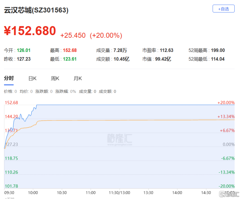 云汉芯城:今日20cm涨停,换手率52.20%,振幅22.85%,成交额10.45亿元。龙虎榜数据显示,机构净买入9560.81万元。