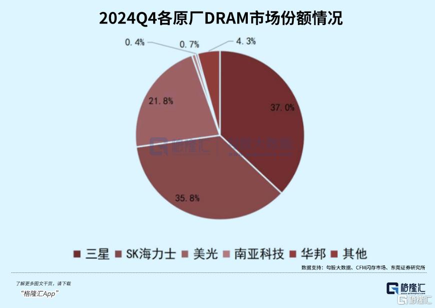 2024年来自韩国和美国的前三大厂商仍占据总市场份额超过九成,但由于三星、美光、海力士等头部公司加速向新制程节点的HBM、DDR5、LPDDR5等产品迁移,放弃或减少利基型产品的生产。