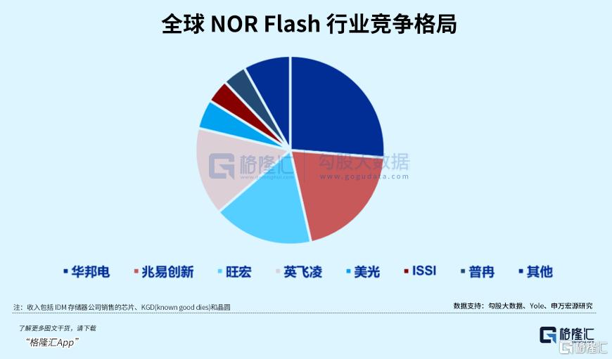 正是借助这个产业规律,兆易创新在2013年成功量产了自主研发的NORFlash,自此立足于被国家巨头垄断多年的市场,经过多年经营成为了全球第二的NORFlash芯片供应商。