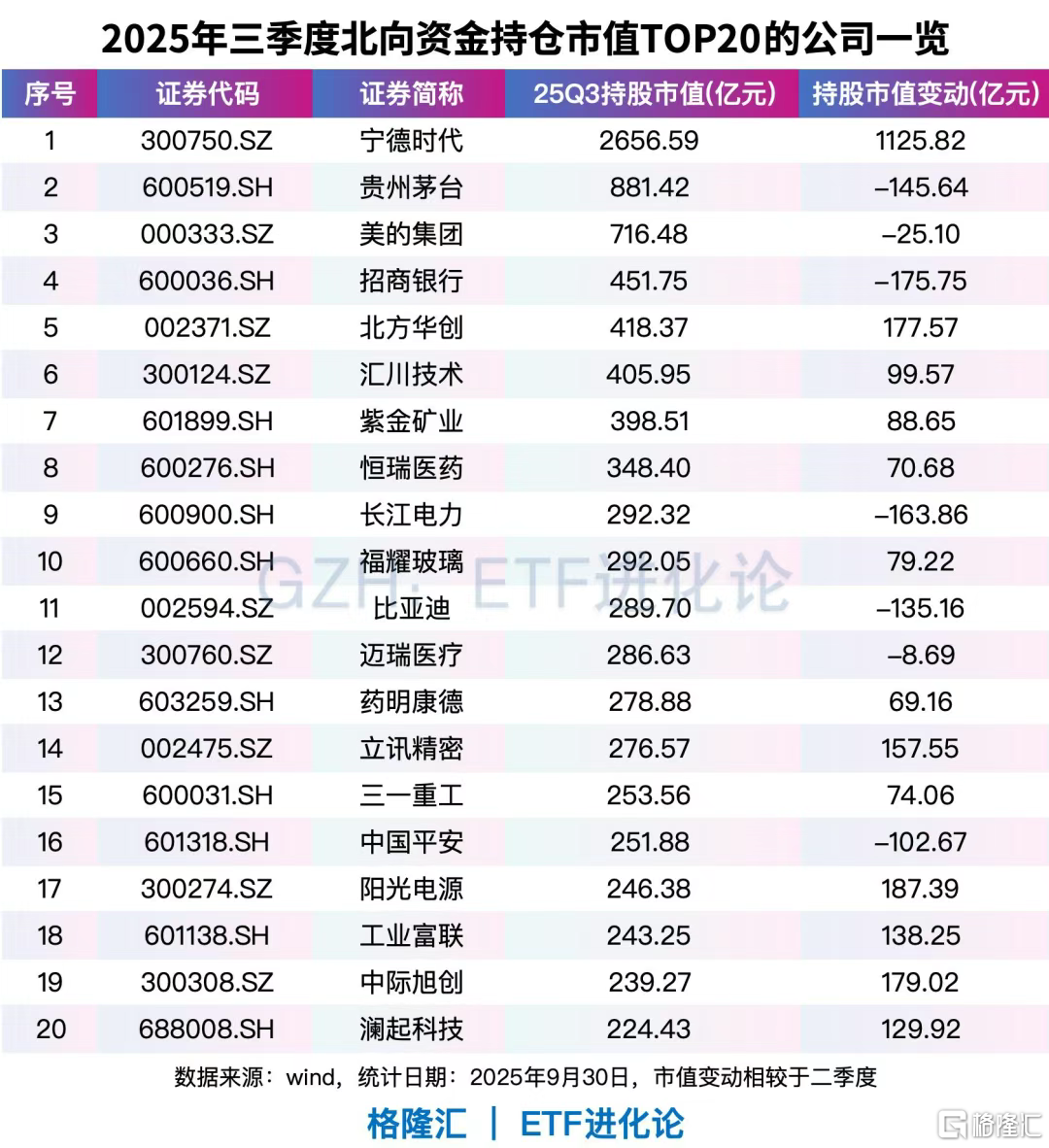 北向资金2025年三季度末持股数据公布,外资最新调仓动向曝光。