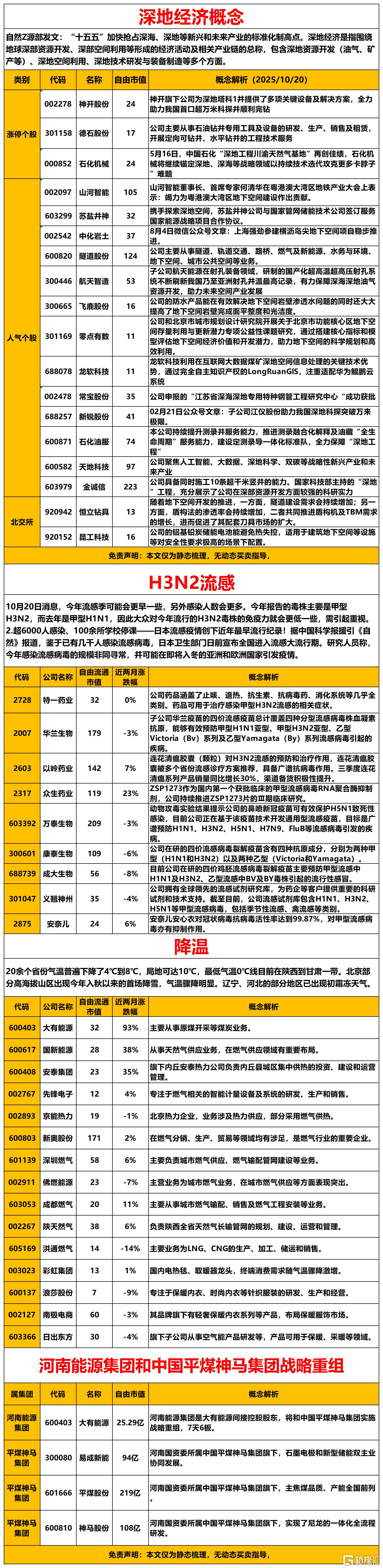 1.自然Z源部发文:“十五五”加快抢占深海、深地等新兴和未来产业的标准化制高点。深地经济是指围绕地球深部资源开发、深部空间利用等形成的经济活动及相关产业链的总称,包含深地资源开发(油气、矿产等)、深地空间利用、深地技术研发与装备制造等多个方面。 2.10月20日消息,今年流感季可能会更早一些,另外感染人数会更多。今年报告的毒株主要是甲型H3N2,而去年是甲型H1N1,因此大众对今年流行的H3N2毒株的免疫力就会更低一些,需引起重视。 2.超6000人感染、100余所学校停课——日本流感疫情创下近年最早流行纪录!据中国科学报援引《自然》报道,鉴于已有几千人感染流感病毒,日本卫生部门日前宣布全国进入流感大流行期。研究人员称,今年感染流感病毒的规模非同寻常,并可能在即将入冬的亚洲和欧洲国家引发疫情。3.20余个省份气温普遍下降了4℃到8℃,局地可达10℃,最低气温0℃线目前在陕西到甘肃一带。北京部分高海拔山区出现今年入秋以来的首场降雪,气温骤降明显。辽宁、河北的部分地区已出现初霜冻天气。