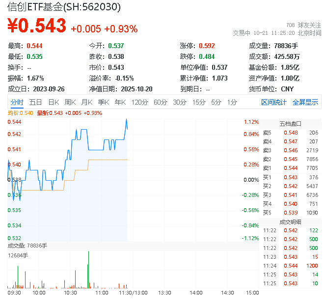 10月21日,截至11时25分,信创板块表现活跃,中证信息技术应用创新产业指数上涨1.36%,成份股方面,概伦电子领涨3.24%,品高股份上涨3.2%,福昕软件上涨2.86%。