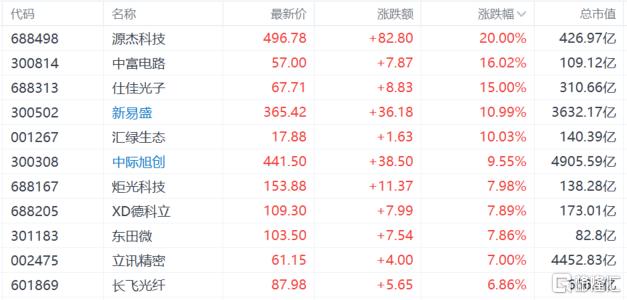 CPO概念继续活跃,源杰科技涨停,新易盛涨超10%,中际旭创涨超9%。消息面上,券商研报称,产业链调研显示,1.6T光模块需求持续上调。海外大客户近期上修2026年1.6T光模块采购计划,从1000万上修到1500万,再到近期的2000万只,主要系GB300与后续Rubin平台加速部署,AI训练与推理网络带宽需求快速增长,1.6T产品进入量产放量阶段。