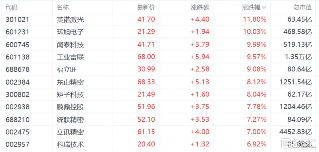 消费电子、苹果概念上涨,环旭电子、闻泰科技涨停,工业富联大涨超9%。分析师表示,苹果iPhone 17系列在中国和美国市场销量强劲,市场对于换机周期启动的预期升温,推动苹果股价上涨。根据市场调查机构Counterpoint Research近期发布的报告显示,在上市后的10天,iPhone 17系列在中国和美国市场的销量较去年同期的iPhone 16系列增长了14%。
