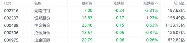贵金属下跌,湖南白银跌超3%,中金黄金、招金黄金等收跌。KCM Trade首席市场分析师Tim Waterer表示,获利了结和避险资金流入的减弱共同削弱了今天金价的优势……黄金的任何回调都将被视为买入机会,而美联储当前仍在的降息轨道上。如果本周稍晚公布的美国CPI数据不会带来任何令人不快的上行意外,那么当前金价涨势还有进一步上行空间。