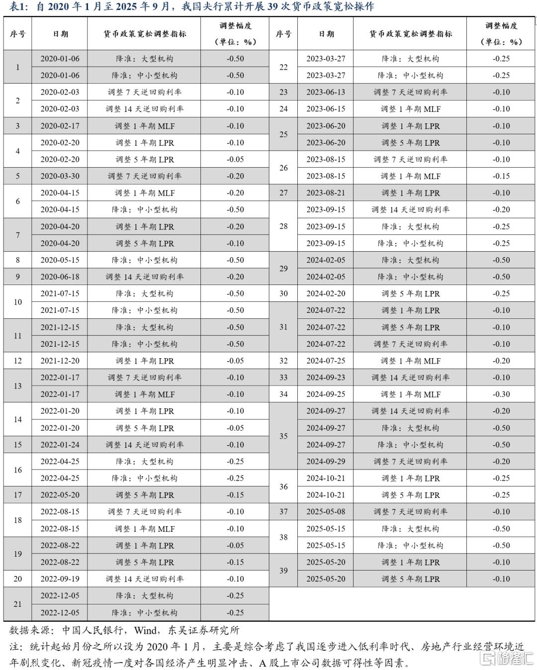 首先,我们梳理出自2020年1月至2025年9月,我国央行累计开展了39次货币政策宽松操作。