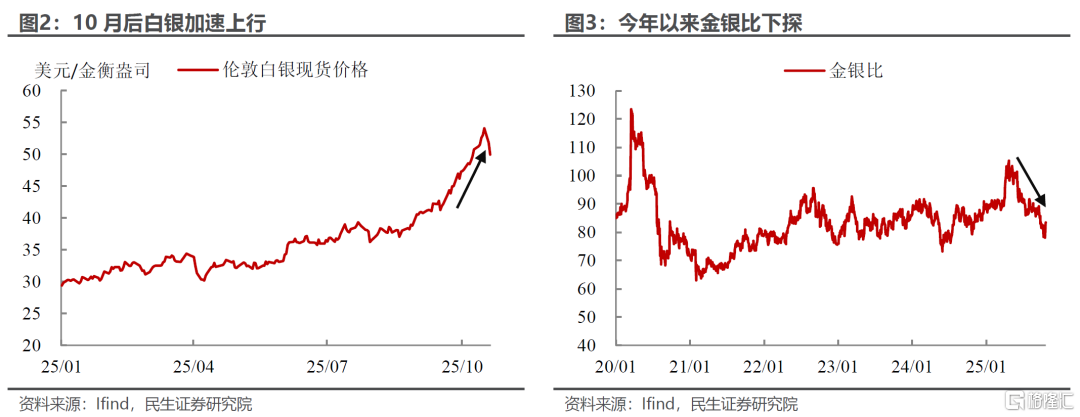 本轮白银行情有明显的逼空特点。10月9日以来,白银突破50美元关口之后,市场开始关注现货市场的短缺。此后,银价继续飙升,租赁利率飙升至30%以上,供需失衡加剧。而10月13日后,本轮“逼空”行情继续加速直至上周五触顶回落。