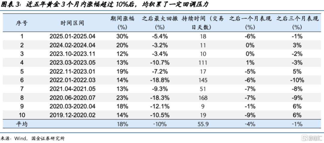 从短期涨幅来看,黄金今年已累计创下45次历史新高,自8月21日后的不到两个月内金价上涨了约30%,这在近年黄金的大牛市环境中仍是首次。根据过去五年的观察,金价每一次短期快速上涨幅度的上限通常在30%左右,且大涨结束后的一个月平均回撤4%。本次上涨速度尤其快,用时不到两个月即达到这一历史观察上限。从历史上涨幅度和速度来看,短期内金价的上涨动能或已相对充分,10月21日黄金盘中的大跌主要原因是前期超买后的技术性回调。