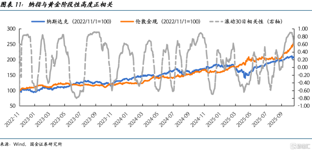 因此,需要关注美股对黄金的“引领”作用——如果美股在今年最后两个月继续疯狂,黄金可能继续上涨“对冲AI泡沫”;反之如果美股开始调整,黄金也缺少新的催化剂,资金可能会流向债券市场或其他红利资产。