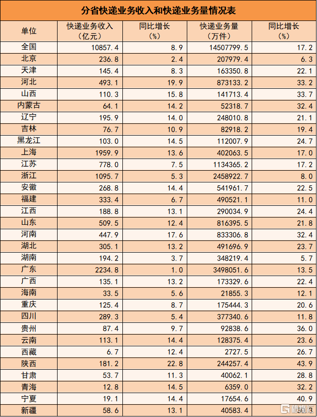 1—9月,邮政行业业务收入累计完成13136.3亿元,同比增长7.7%。其中,快递业务收入累计完成10857.4亿元,同比增长8.9%。