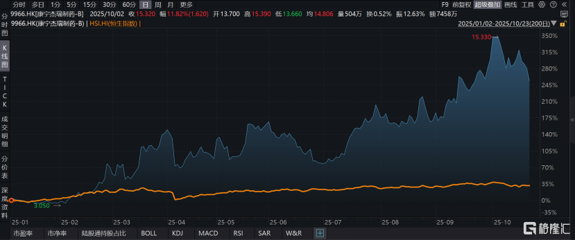 从市场估值来看,尽管公司股价已创阶段新高,但若横向对比同业,并结合其平台价值、创新能力、管线厚度及核心产品所展现的“同类最优”潜力来看,康宁杰瑞的估值仍被低估。