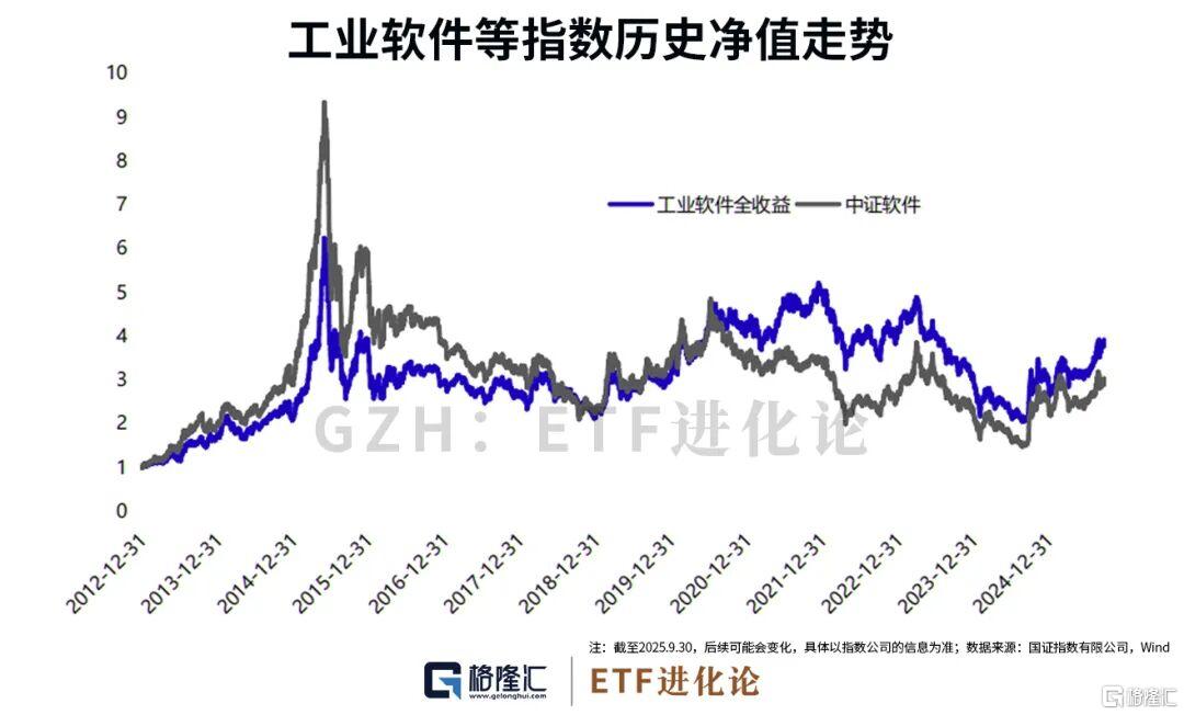 工业软件指数历史表现展现出较强的收益能力。截至2025年9月末,工业软件指数自2013年以来累计收益达251.95%,显著高于中证软件指数的201.28%。