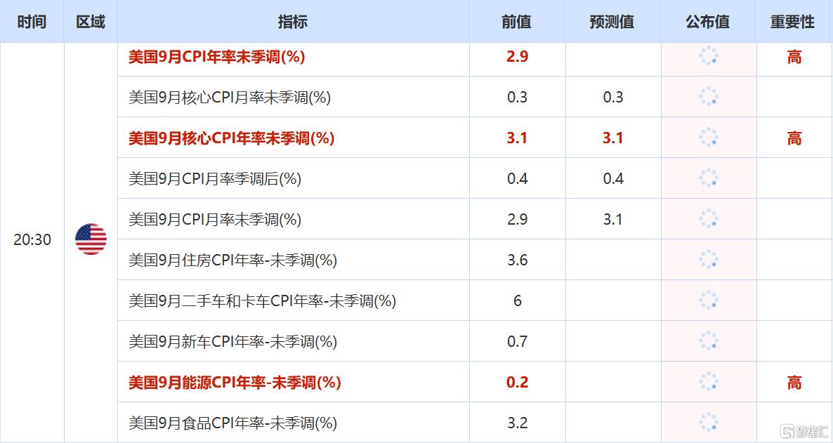 美国9月CPI报告定于今晚20:30公布,美国政府停摆进入第四周、距美联储10月议息不到一周之际,通胀重回“3”字头的风险左右连续降息前景,数据真空期的金银暴涨也将迎来大考,敬请留意相关风险。
