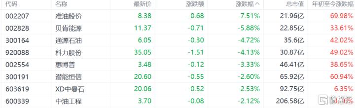 油气设服走弱,准油股份跌超7%,通源石油、科力股份跌超4%。消息面上,国际能源署(IEA)在最新月报中表示,全球原油市场正面临比预期更大的供应过剩,大量原油运往主要储存枢纽后,全球库存将很快上升。IEA预计,今年全球原油供应将增长300万桶/日,明年增长240万桶/日,较此前预测分别上调30万桶/日。相较之下,全球需求增速预计仅为71万桶/日和69.9万桶/日,明显落后于供应增长。