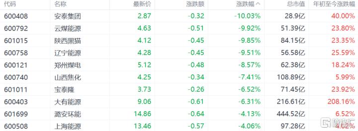 煤炭板块回调,安泰集团跌停,云煤能源、陕西黑猫、辽宁能源跌超9%。华源证券指出,近期行业通过“查超产”的形式展开反内卷,此次供给端政策效果显著,在煤炭需求端受宏观环境及新能源替代趋势影响的背景下,政策对供给端形成的拐点式收缩作用,或将是煤炭价格企稳上行的关键性变量及长期积极因素。