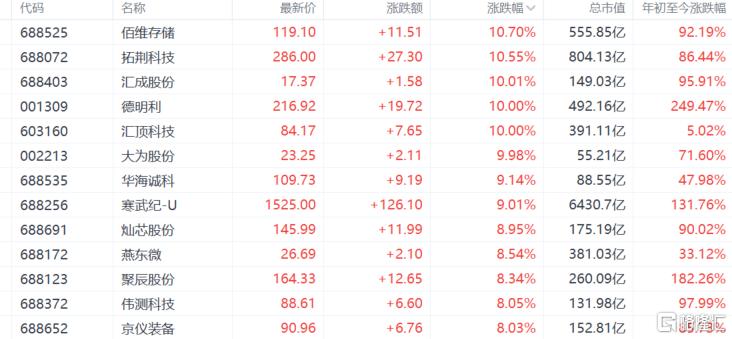 存储芯片、半导体板块爆发,佰维存储、拓荆科技、汇成股份、德明利等多股涨停,寒武纪涨超9%。消息面上,十五五明确提出科技自立自强,要“加快高水平科技自立自强,引领发展新质生产力”,并抢占科技发展制高点。三星电子与SK海力士宣布芯片提价30%。摩根士丹利预测,人工智能热潮下,存储芯片行业预计迎来“超级周期”。