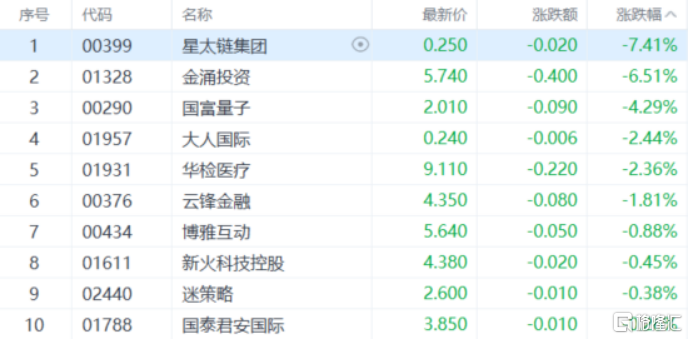加密货币概念股下跌,星太链集团跌超7%,金涌投资跌超6%,国富量子、大人国际、华检医疗等多股跟跌。