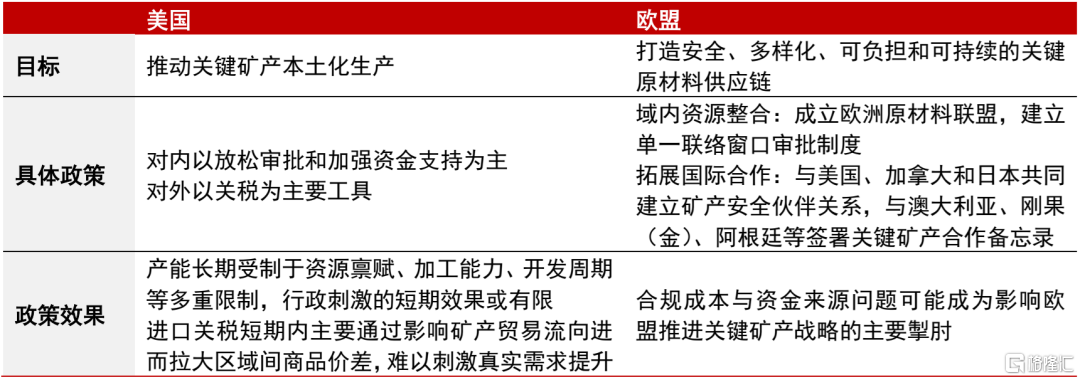分国别来看,印尼方面,镍出口管制在价值留存方面卓有成效,未来印尼有望通过调整生产配额政策、打击非法采矿等方式进一步强化对镍、锡等资源的供给约束。刚果(金)方面,从钴出口禁令转向更精细灵活的出口配额制,有望给钴价带来持续支撑。美欧方面,虽意图推动关键矿产供给多元化与本土化,但受制于资源、技术、资金、监管等多重困难,短期内或难实现。