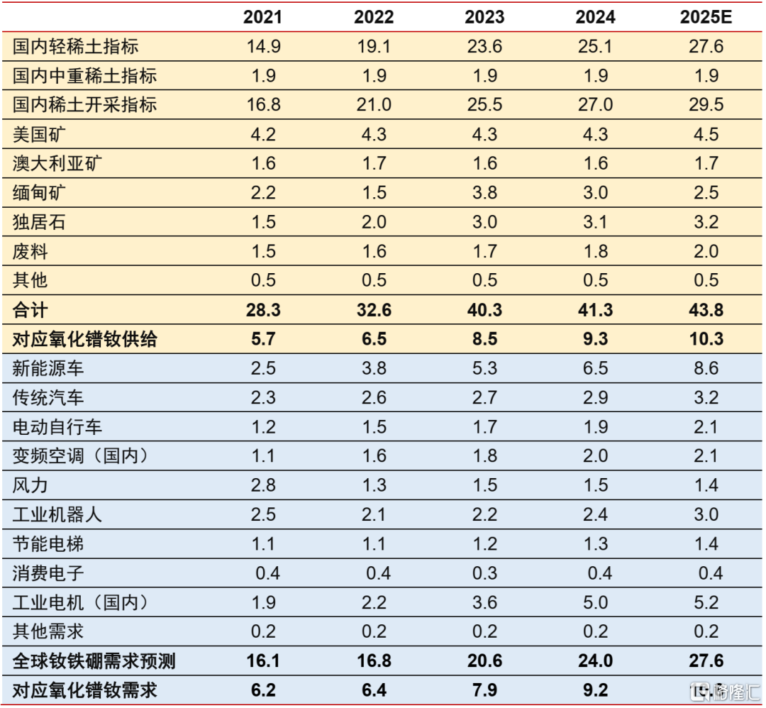 资料来源:工信部、海关总署官网,USGS,Lynas官网,《稀土市场形势及供应格局浅析》(陈璐、李怀国和梁丽霞著),中信证券研究部预测