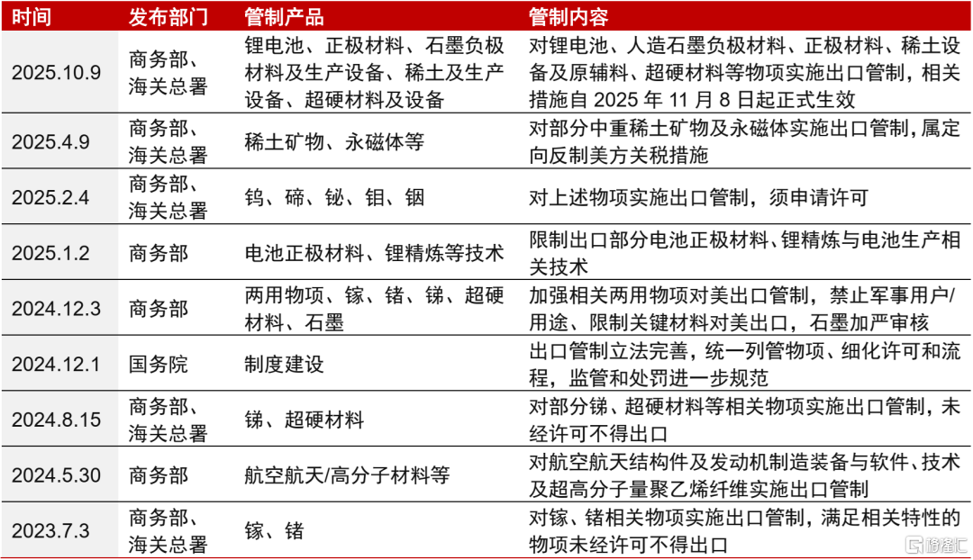 2025年10月9日,商务部联合海关总署等部门发布多项公告,对稀土相关物项、技术、设备及原辅料实施出口管制,管制范围从境内扩展至境外,新增稀土二次资源回收利用相关技术及生产线装配、调试、维护等技术的出口管制,基本覆盖稀土全产业链,并首次涉及半导体及人工智能领域,稀土供给刚性或进一步加强。