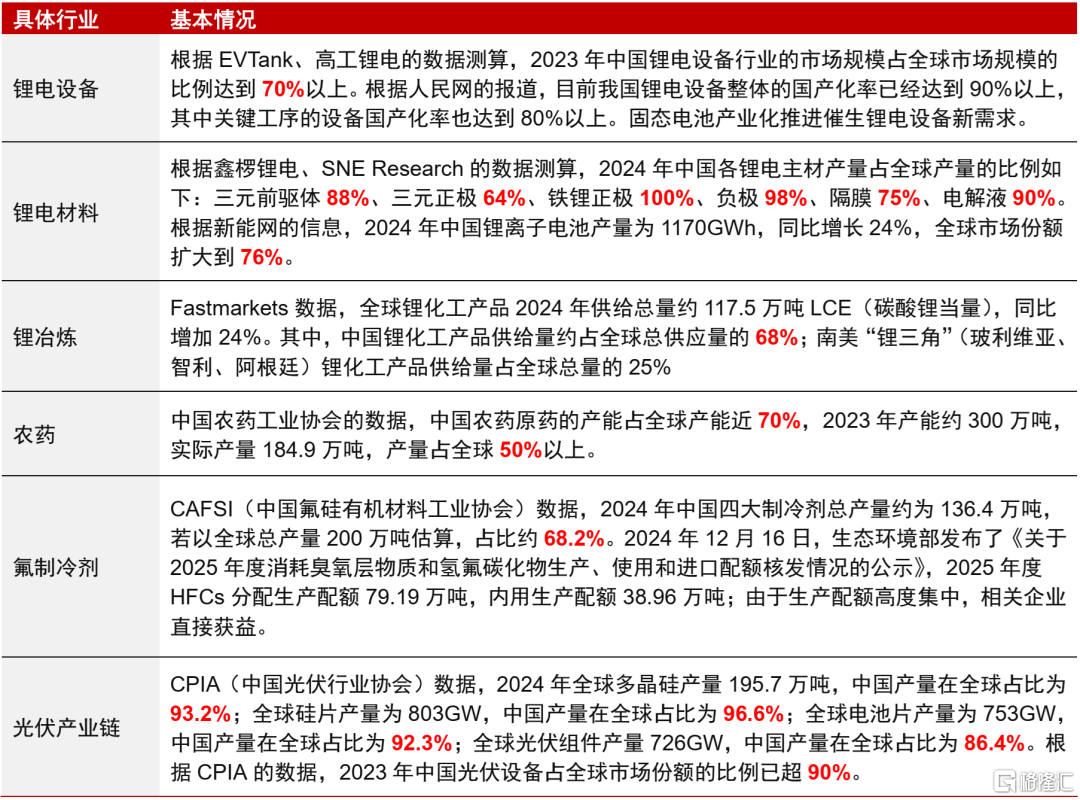 中国具有极强的全球绝对份额和技术优势的代表性行业
