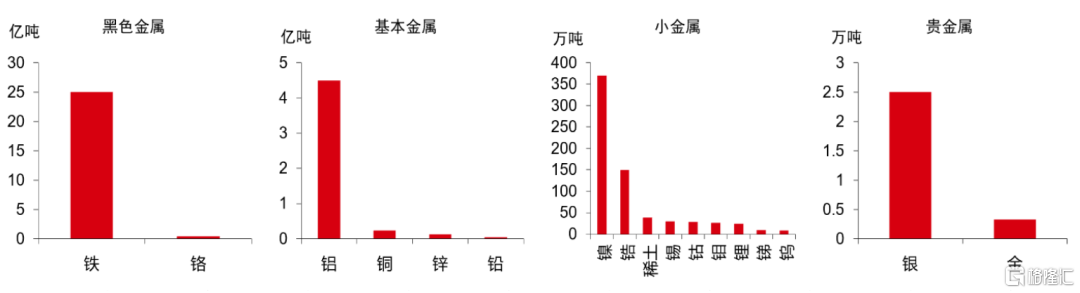 小金属和贵金属的全球年产量显著少于黑色金属和基本金属