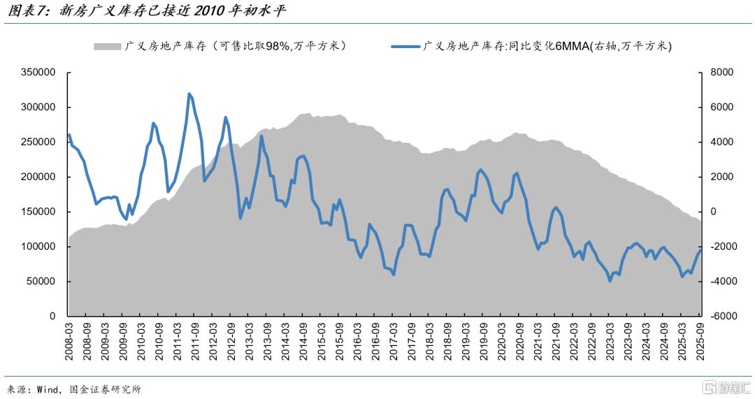 去年以来,得房率100%的“新好房”受到购房者的追捧,但随着今年各地陆续出现得房率120%、140%的项目,导致新规产品变“旧规”,反而加剧购房者观望情绪。根据我们的测算,2025年新房住宅销售面积将保持在7.5亿平方米,新开工面积预计降至6亿平方米,竣工面积降至5亿平方米。今年以来,新房广义库存平均每月下降2000万平方米左右,目前广义库存已降至13.7亿平方米,接近2010年初的水平。随着新增需求不断消化冗余库存,市场自然企稳出清。