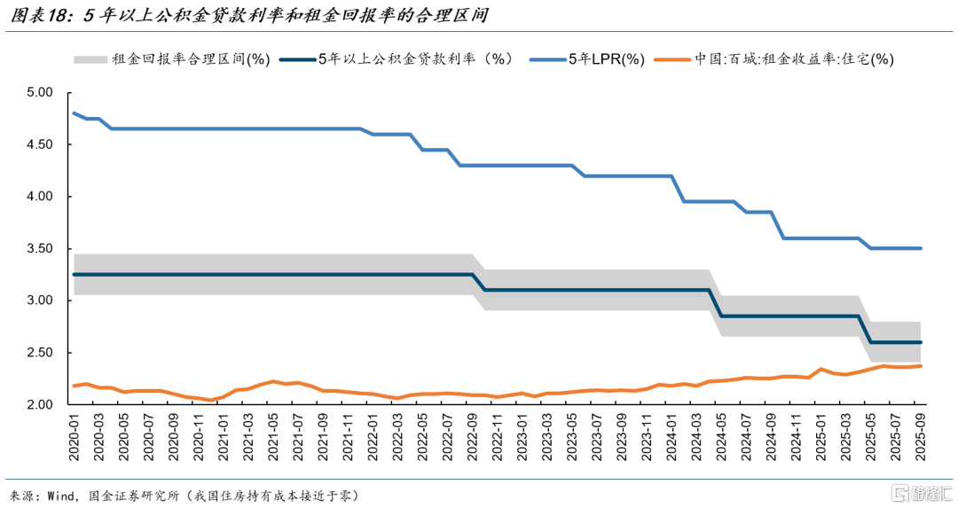 一是从刚改需求的角度看,合理的租金回报率应该接近公积金贷款利率,大致在2.5%-2.6%之间。