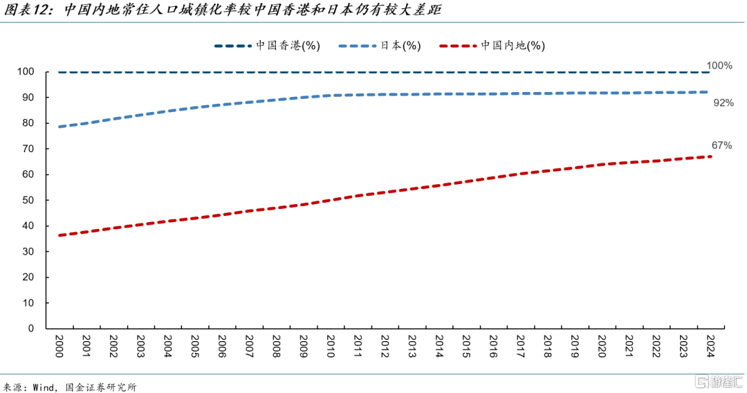 考虑到中国内地的常住人口城镇化率仅有67%,较日本(92%)和中国香港(100%)仍有较大差距,并且中国内地的低能级城市和县镇人口流入较少,二手房市场并不活跃,用全国的二手房成交占比和日本、中国香港比较可能并不合适。