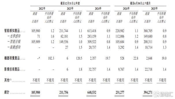 从产品价格来看,2022年,智能音频产品的平均售价为1.2元/件,2023年则降至1元/件,降幅为16.7%,2024年进一步降至0.8元/件。光学感知产品的售价也呈现类似的趋势。