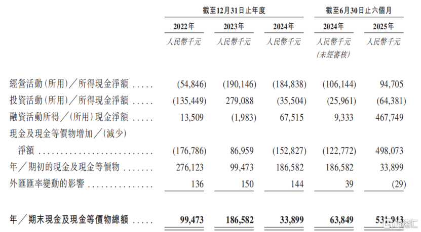 2022年至2024年,聚芯微电子的净经营现金流出分别为5480万元、1.9亿元、1.85亿元,2025年上半年,公司的净经营现金净流入9470万元。
