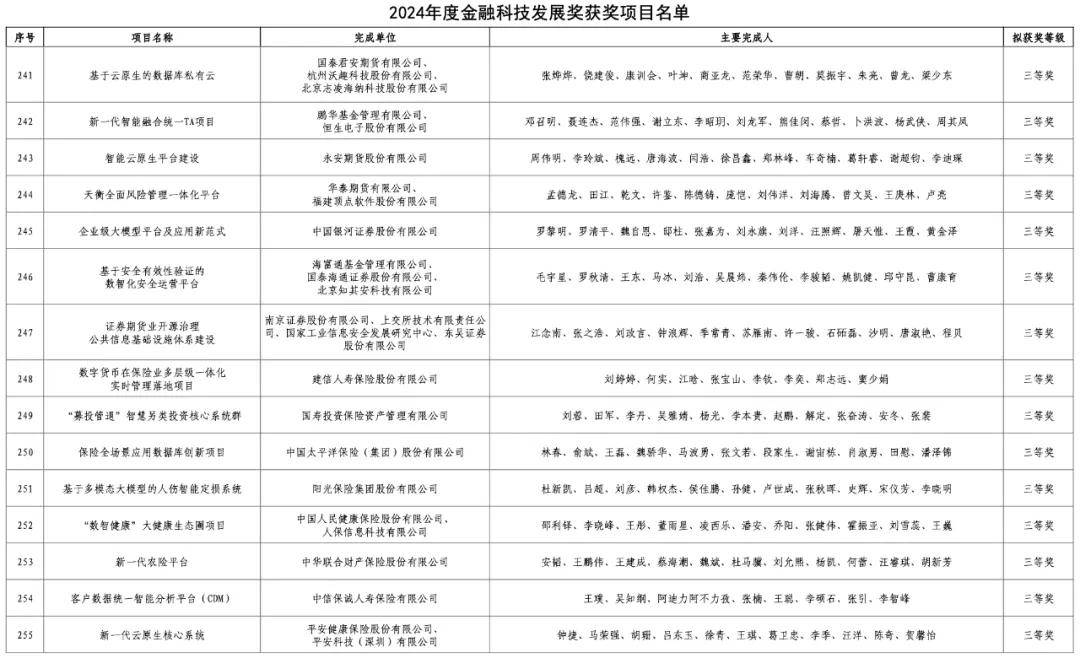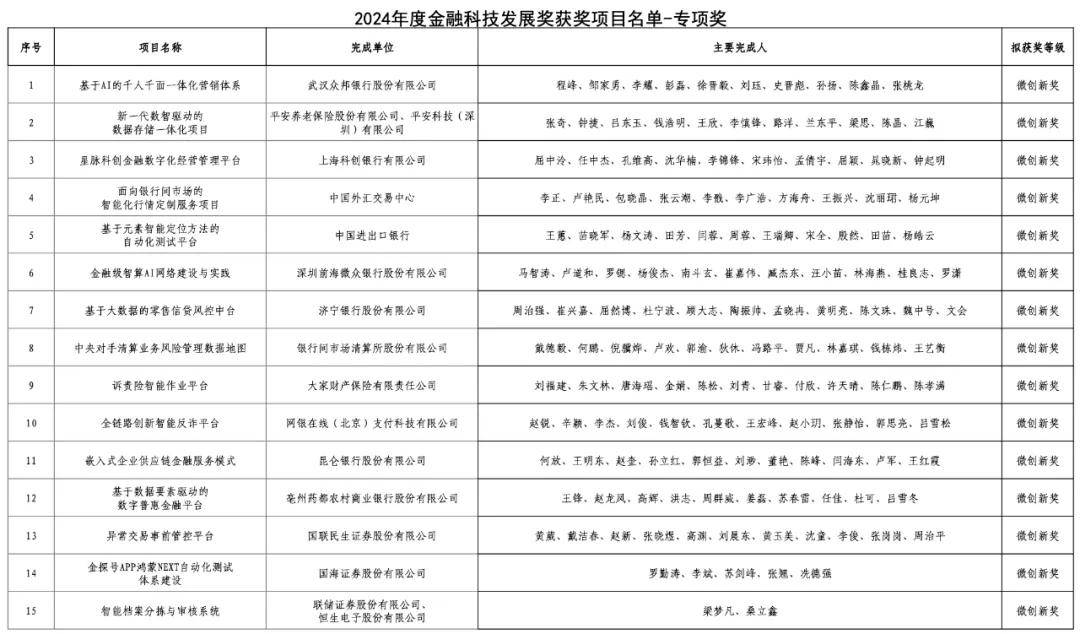 其中,特等奖1项,一等奖18项,二等奖103项,三等奖148项,专项奖20项,涵盖自主可控、业技融合、数智化转型、风险防控等多方面内容。