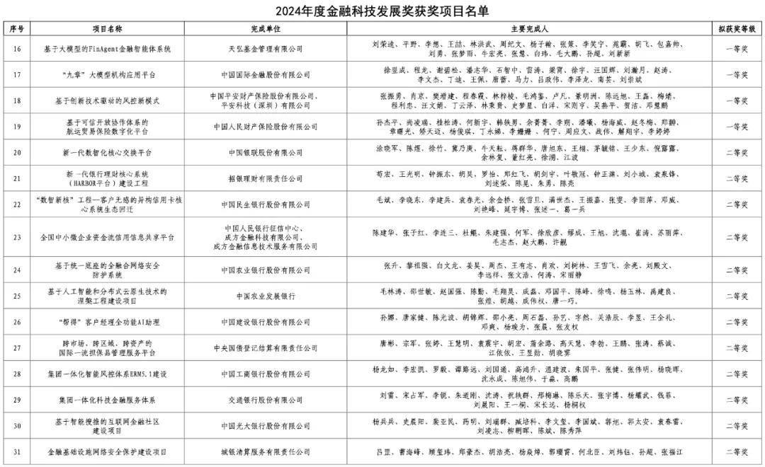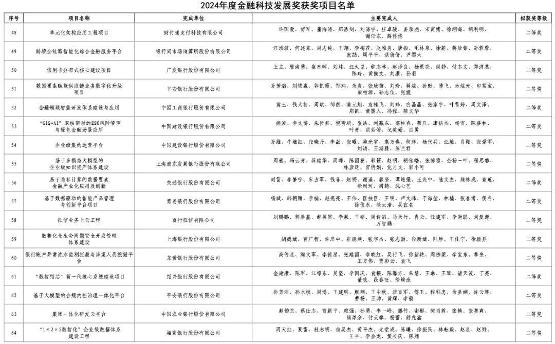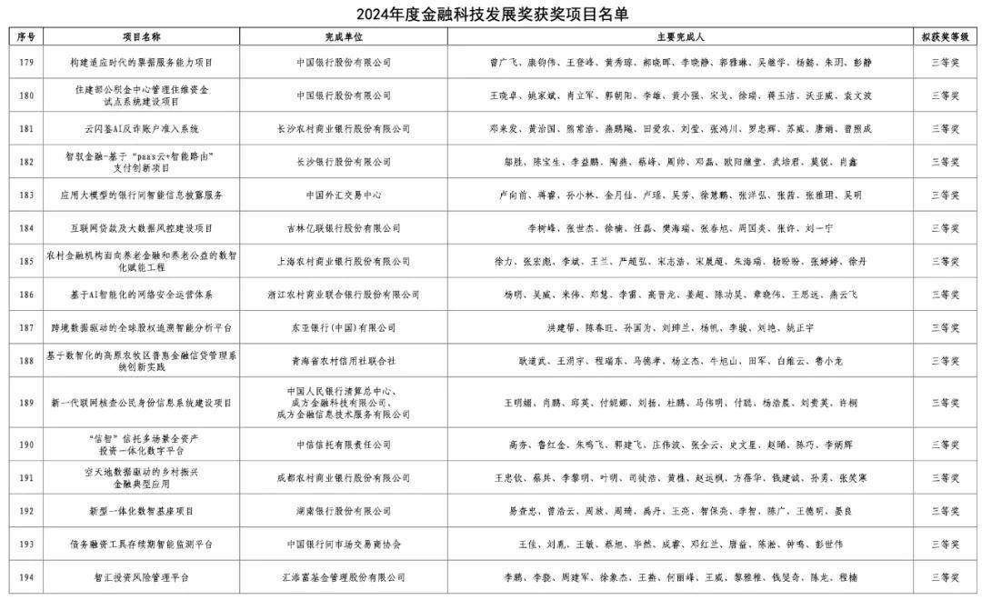 今日,中国人民银行发布《关于2024年度金融科技发展奖获奖项目的公示》,本年度对681个申报项目开展定性定量评价,经金融科技发展奖评审领导小组审定,共有290个项目获奖。