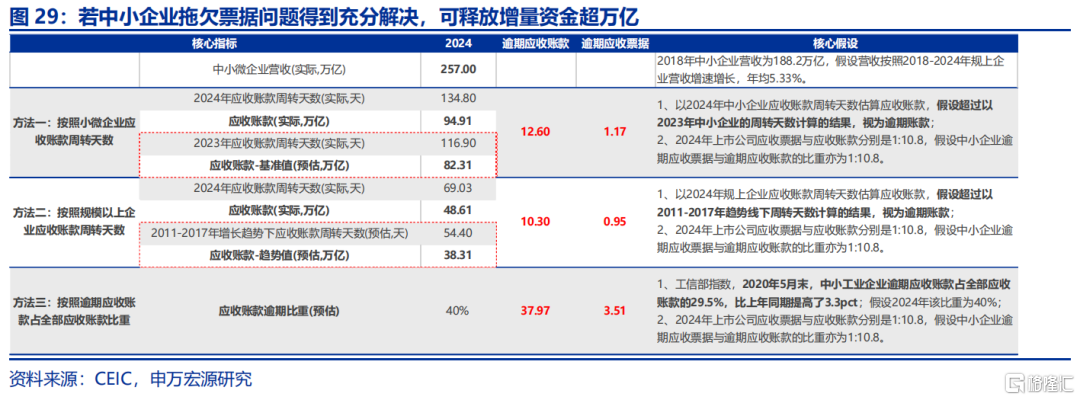 “化债”推进过程中,企业现金流或同步改善,有利于经济内生动能恢复。目前股份制、私营企业应收账款已有较大回落,单月增速分别下滑1.7、0.9个百分点至8月7.7%、6.2%;大中型企业应收账款增速也有较大回落(-2.7pct至6.1%),后续有助于进一步缓解“三角债”问题。参考2019年经验看,《政府工作报告》明确加码清欠款项政策后,各级政府部门和大型国有企业即清偿民营企业中小企业账款6600多亿元。在2020年上半年疫情影响时期,清欠款项也达956亿元。据测算,目前应付票据中逾期金额或在万亿级别,若拖欠票据问题得到充分解决,有助于企业投资恢复活力。