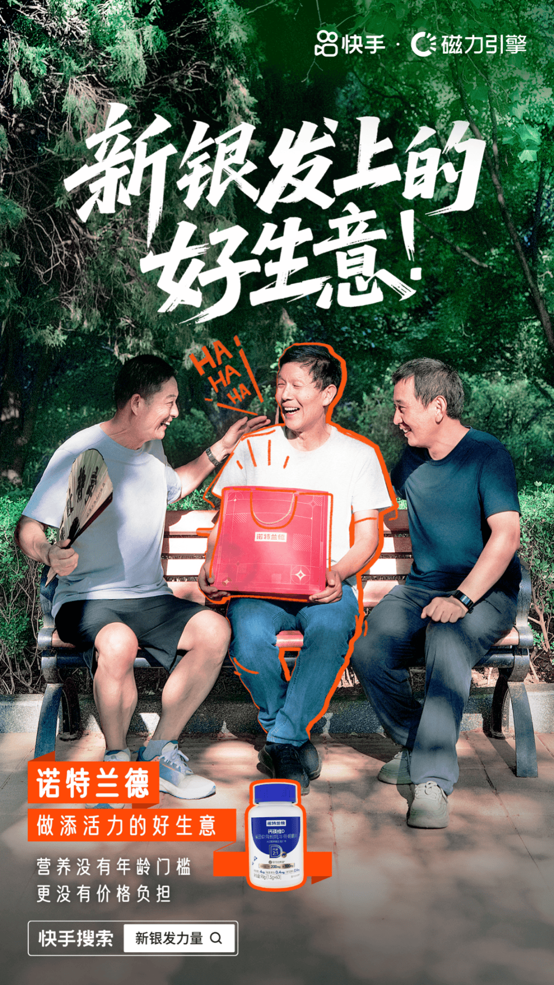 诺特兰德就是很典型的一个例子。因为关注到快手平台45+用户人群更为活跃,这家从事健康食饮业务的企业从2020年末入驻快手,通过磁力聚星平台链接不同量级的达人,针对不同圈层银发用户制定专属种草方案,为平台生意打开了销路。