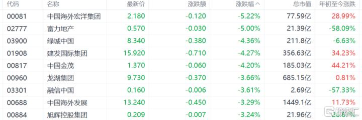 内房股下挫,中国海外宏洋集团、富力地产跌5%,绿城中国、建发国际跌超4%。惠誉认为,中国内地房地产市场尚未触底,复苏不稳、量价回落、分化延续。