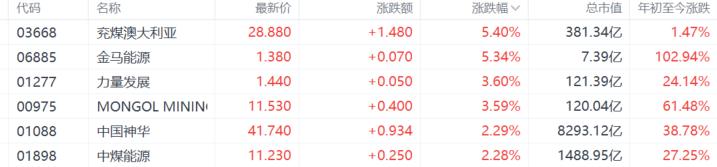 煤炭股走强,兖煤澳大利亚、金马能源涨超5%,力量发展涨超3%,中国神华、中煤能源涨超2%。国泰海通认为,煤炭板块周期底部已经确认在2025年第二季度,供需格局已经显现了逆转拐点,下行风险充分释放。自9月15日启动上涨以来,截至上周五煤价已超过770元/吨,本轮煤价呈现超预期上涨态势,这一现象由多重因素利好共同推动。