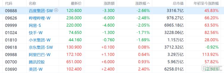 大型科技股涨跌不一,百度、哔哩哔哩、网易跌超2%,小米跌超1%,美团涨超2%,腾讯、阿里小幅收涨。消息面上,中美元首釜山会晤结束,商务部公布中美经贸磋商成果共识。