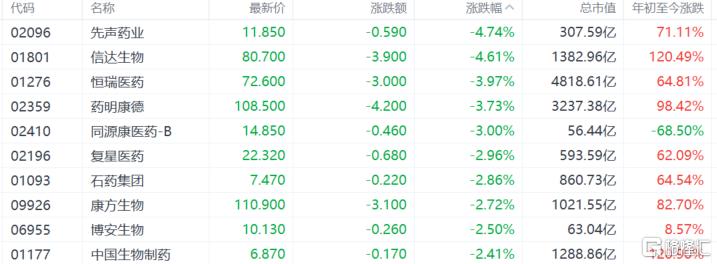 创新药走低,先声药业、信达生物跌超4%,恒瑞医药、药明康德跌超3%。此前中泰证券指出,从基本面角度,创新药并没有变差,仍然是医药板块中景气度、成长性最好的方向,当前的波动更多是因为资金情绪放大了涨跌幅,且存在行业间的轮动,阶段加速调整后机会凸显。