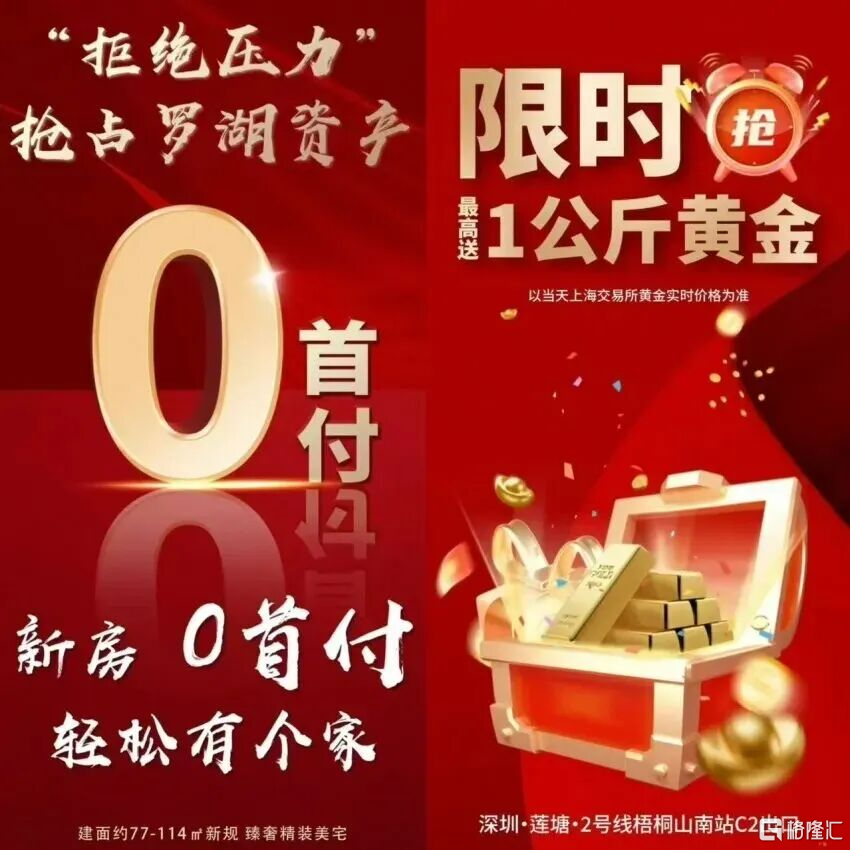 最近,在中介的朋友圈出现一则海报,鲜红的宣传海报上印着——“拒绝压力,抢占罗湖资产”“显示抢,最高送1公斤黄金,以当天上海交易所黄金实时价格为准”。