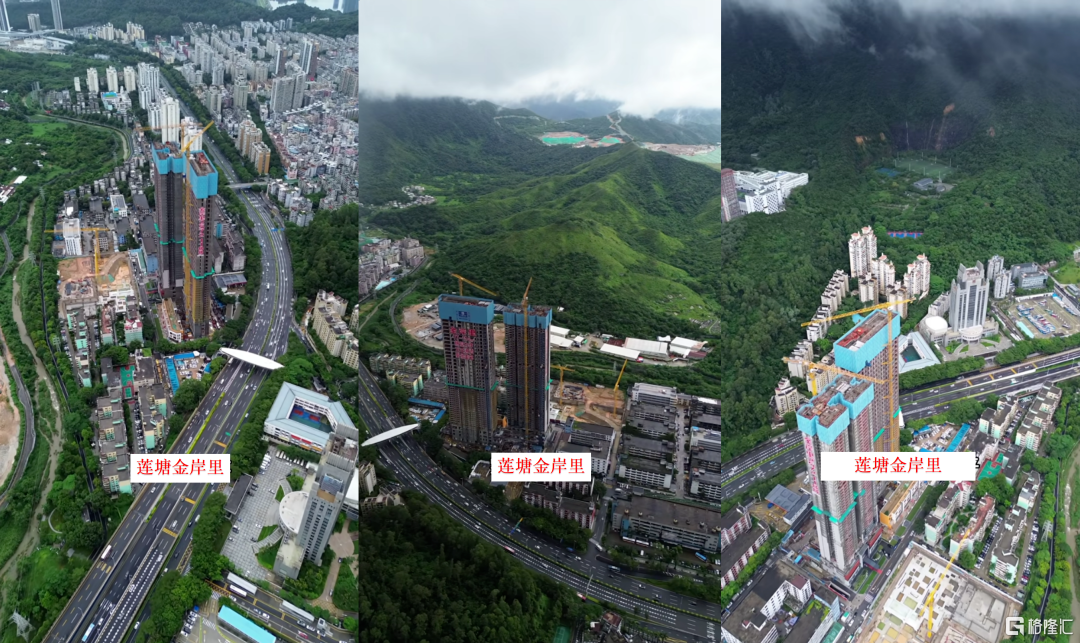最明显的,莲塘金岸里的前身就是“罗湖区莲塘街道港莲路工业区和冠深地块城市更新单元,是工业厂房改造为商业、居住用地的典型,项目周边还有很多未拆迁的厂房。