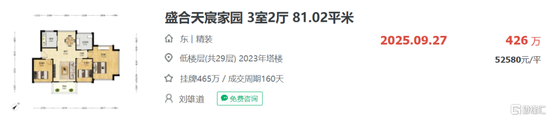 并且9月成交了一套约81平的户型,成交总价约426万,而81平户型曾经的备案总价最低都需要476万。