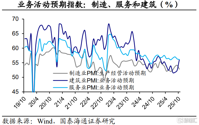 2025年10月,建筑业新订单指数为45.9%,比上月上升3.7个百分点。业务活动预期指数为56.0%,比上月上升3.6个百分点,表明建筑业企业对市场发展预期继续改善。我们认为,接下来,建筑业景气度的修复或将加快。
