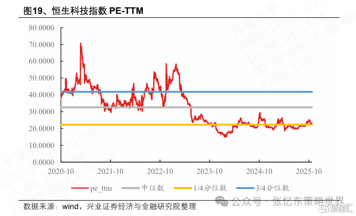 3)当前恒生科技指数市盈率水平仍显著低于历史中枢,后续有望重回科技成长高估值叙事。截至2025年10月24日,恒生科技指数PE-TTM 23.28倍,处于2020年7月以来的31.6%分位数水平。