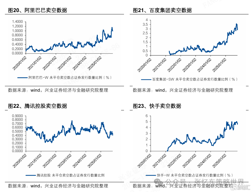 建议年内更积极做多港股,特别是恒生科技。优先推荐互联网龙头为代表的中国AI领域领头羊,有望迎来内、外资共振做多。AI相关产业链值得深度掘金,包括云服务、半导体、光芯片、机器人、消费电子、军工科技、智能辅助驾驶、金融科技等。当前科技股的未平仓卖空占已发行股本比例仍处高位,这也意味着一旦AI进展超预期,将可能空头触发集中回补的行情。