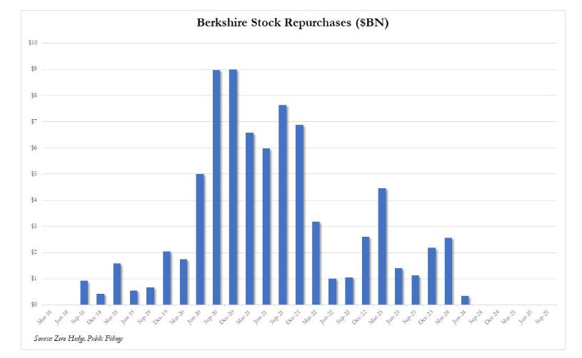 过去三年,伯克希尔已累计净卖出约1840亿美元的股票,仅在第三季度就再度抛售了价值61亿美元的普通股。除了减持股票投资组合,伯克希尔在回购自家股票方面也保持了极大的克制。自2024年第二季度以来,公司便再未进行过任何回购。